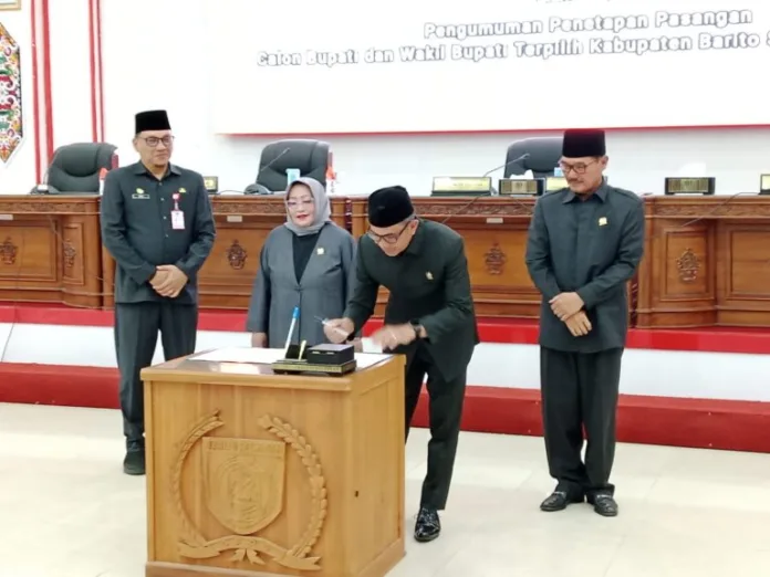 Buntok. www.tabloidmilitan.com. DPRD Kabupaten Barito Selatan melaksanakan sidang paripurna pengumuman penetapan Pasangan calon Bupati dan Wakil Bupati Barito Selatan Bupati terpilih, di Graha Paripurna DPRD setempat, Sabtu 8 Februari 2024.