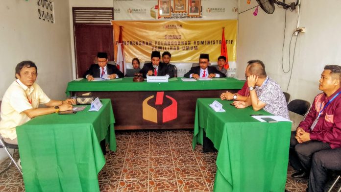 Sidang dipimpin oleh Ketua Majelis Hakim Suwarsono beranggotakan Su’aib dan Rahmat Fauzan Azhami (ketiganya anggota Bawaslu Barsel).