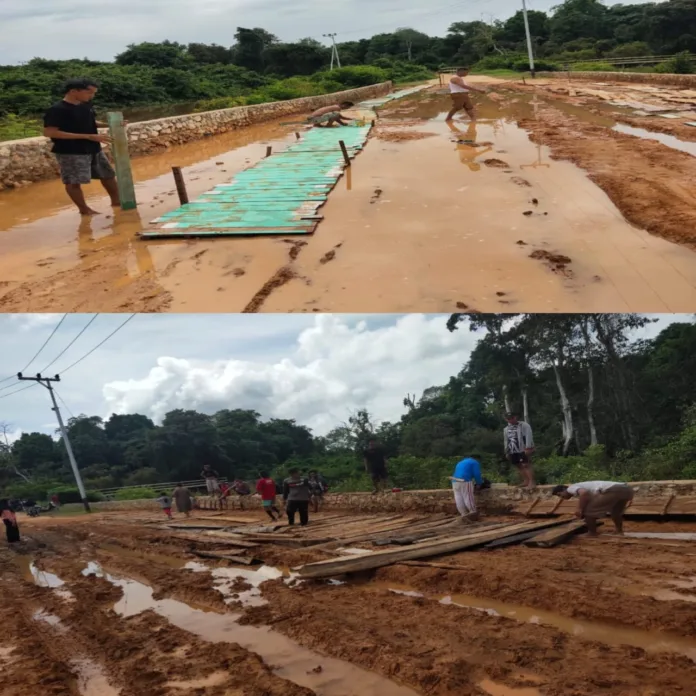 “Saya bersama warga desa terpaksa bergotong royong untuk memperbaikinya, agar setidaknya kendaraan roda dua tidak terlalu sulit melewatinya,” ungkap Yuseran pada media ini melalui aplikasi WhatsApp. Sabtu, (23/11/2024).