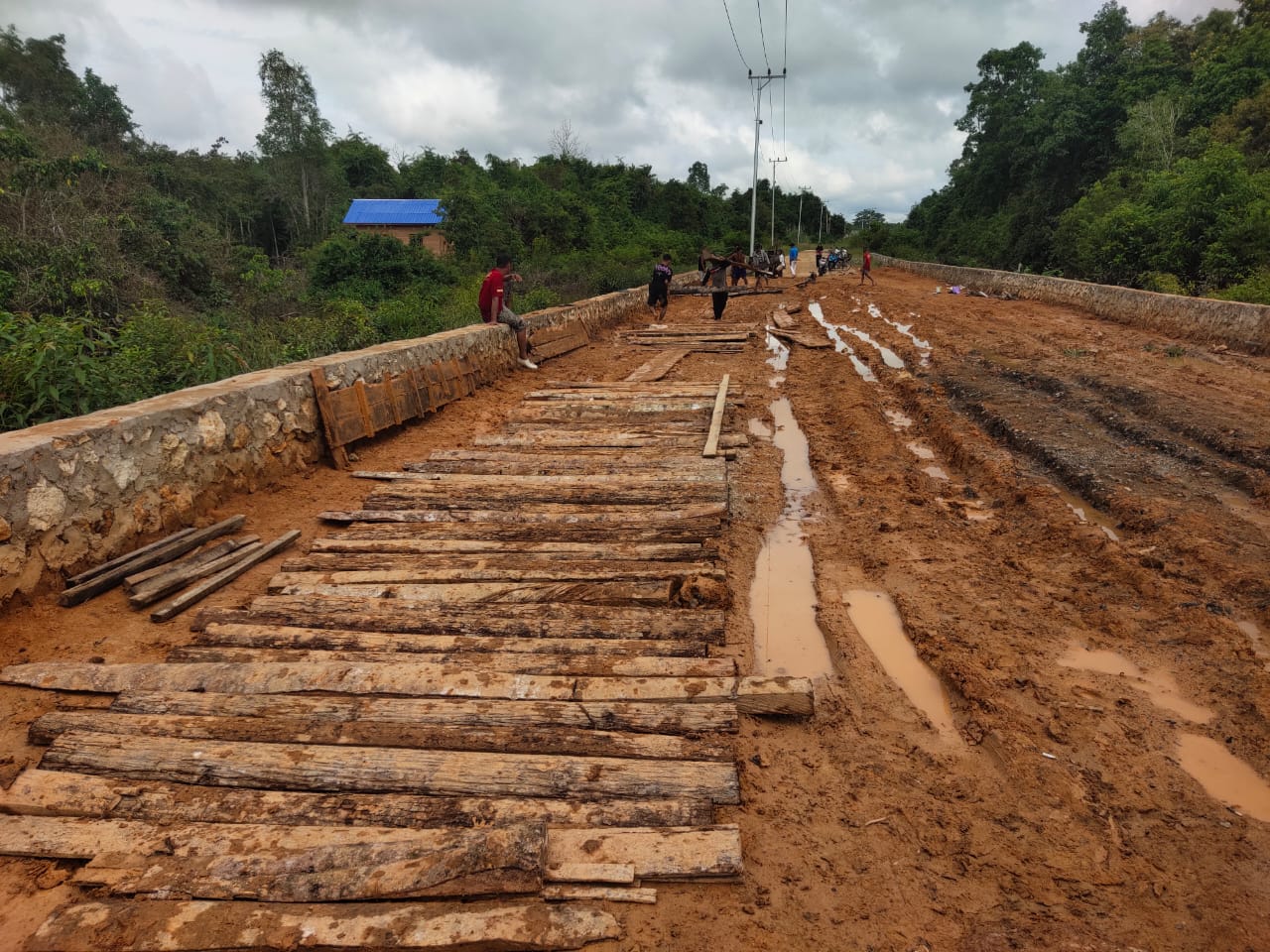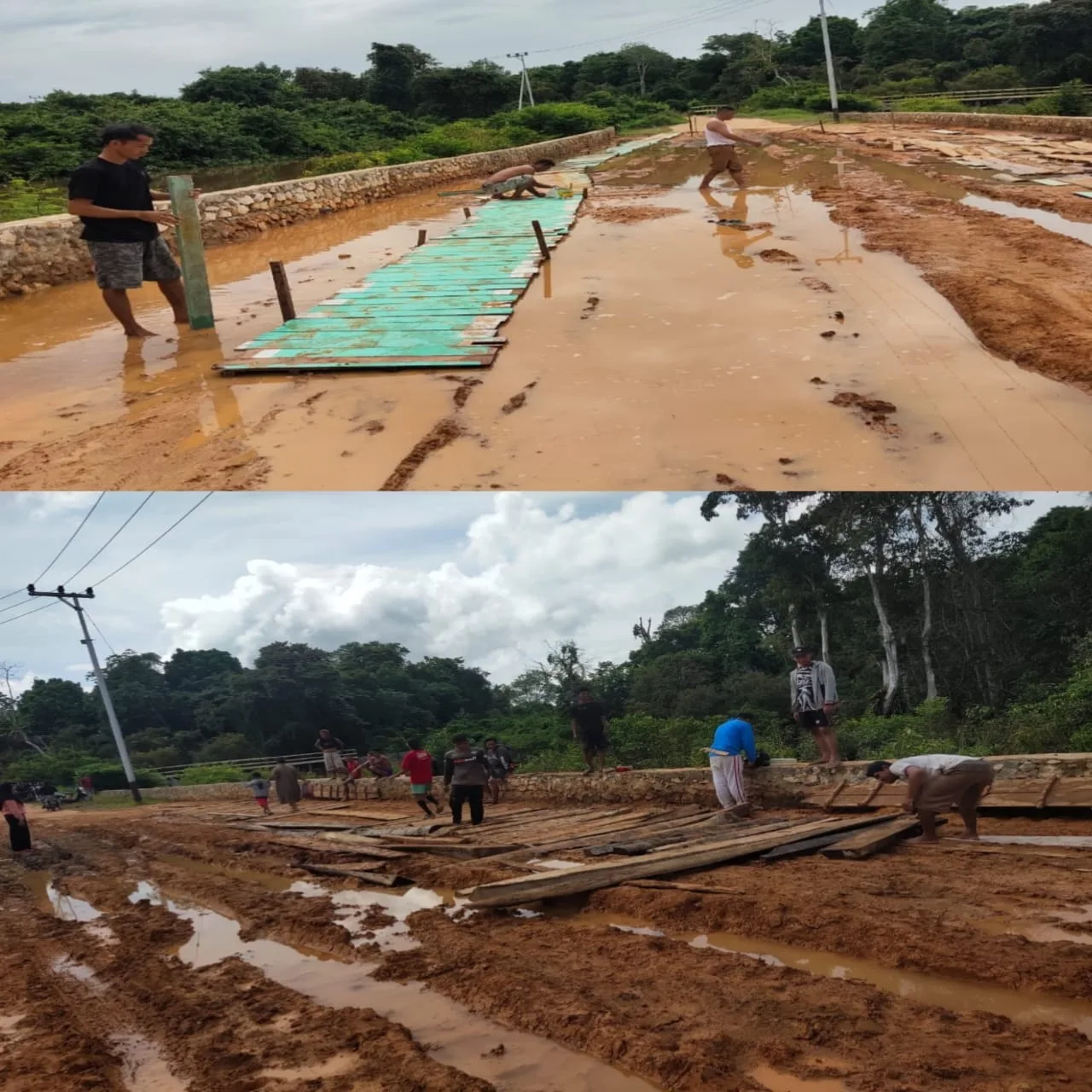 Ia menambahkan, bahwa perbaikan tersebut adalah swadaya warga dengan cara memasang papan sepanjang jalan yang berlumpur tersebut agar aktivitas warga bisa berjalan dengan lancar.