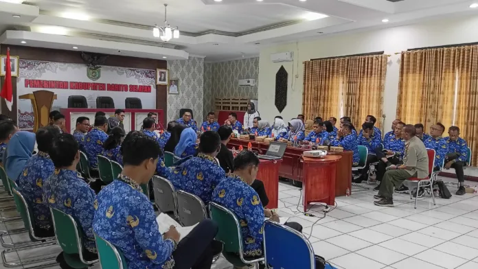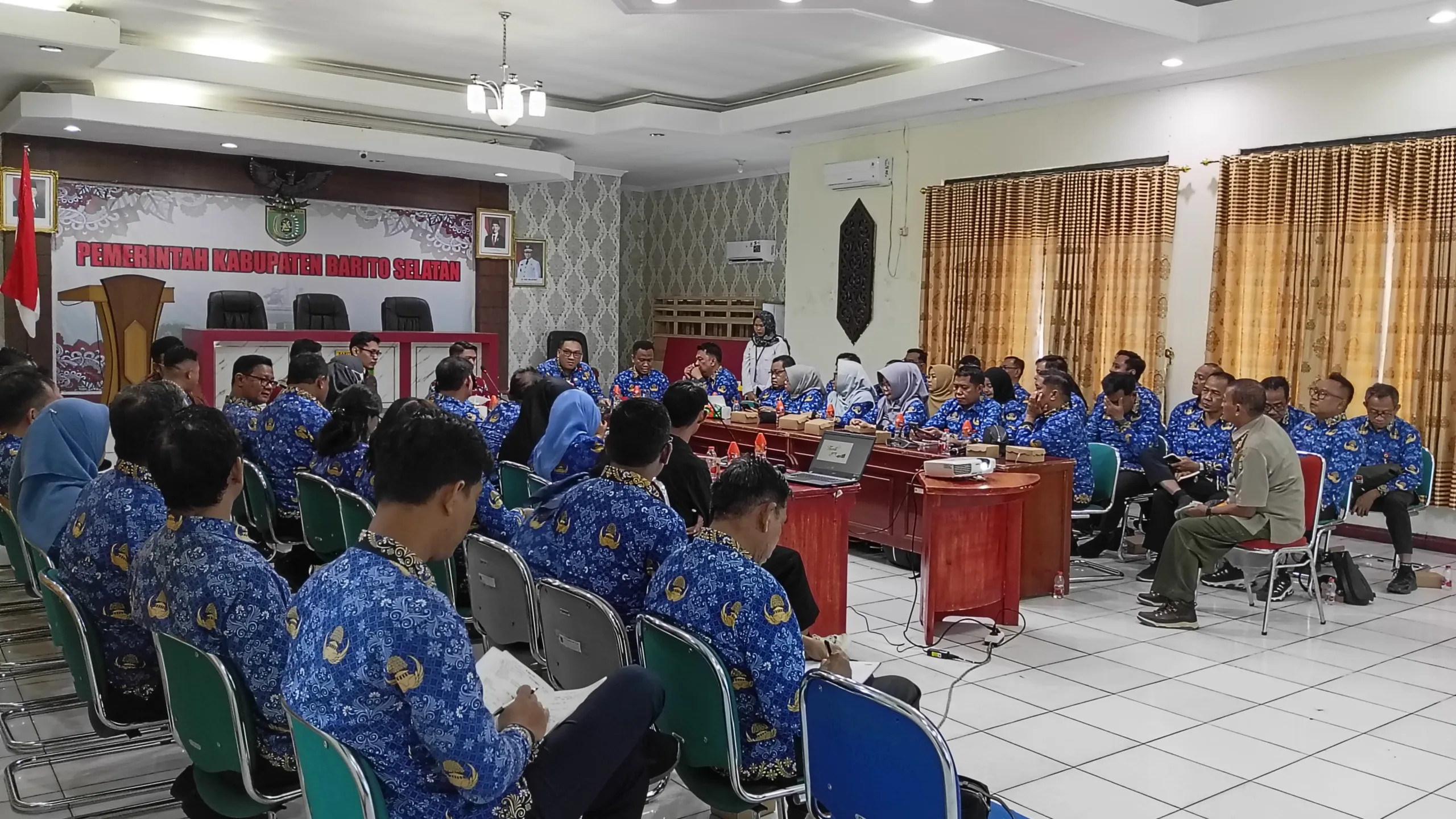 Rapat ini dihadiri oleh Asisten I Setda Barito Selatan, seluruh Kepala OPD, serta berbagai organisasi pemerintahan terkait lainnya.