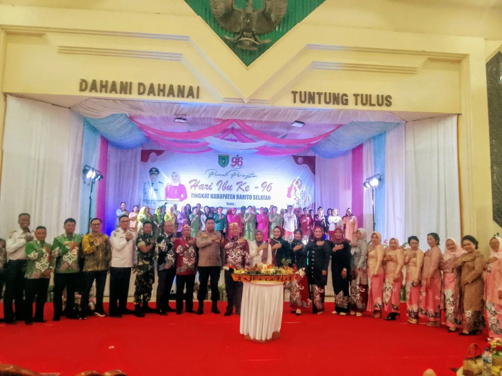 Pemerintah Kabupaten Barito Selatan melaksanakan Puncak Peringatan Hari Ibu ke-96, Rabu 18 Desember 2024 di GPU Jaro Pirarahan Buntok. Kegiatan tersebut berlangsung meriah dengan penampilan berbagai kreasi dari ibu-ibu dan juga pemberian tali asih. Puncaknya ditandai dengan pemutongan tumpeng oleh Pj. Bupati Barito Selatan.