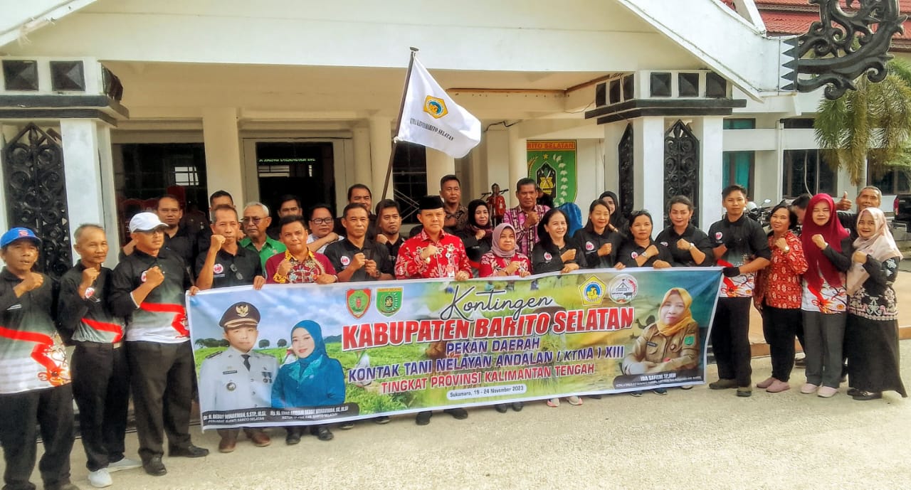 Buntok. www.tabloidmilitan.com. Pj. Bupati Barito Selatan H. Deddy Winarwan melepas Kontingen Kabupaten Barito Selatan untuk mengikuti Pekan Daerah Kontak Tani Nelayan Andalan (KTNA) XIII tingkat Provinsi Kalteng di Kabupaten Sukamara pada tanggal 19 sampai dengan 24 November 2023, di teras Kantor Bupati Barsel, Kamis 16 November 2023 sore.