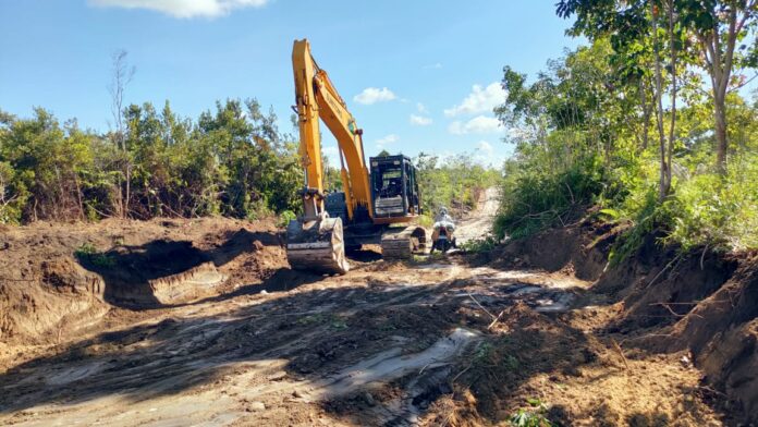 Sinergi antara personel TNI dan penggunaan alat berat menjadi kunci dalam mempercepat pembangunan infrastruktur yang bermanfaat bagi masyarakat Desa Wungkur Baru. (Tim TM Barsel/R. SY Ikat)