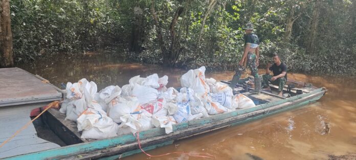 TMMD Reguler ke-124 Kodim 1012/Buntok Langsir Matrial Bersama Warga Gunakan Klotok.